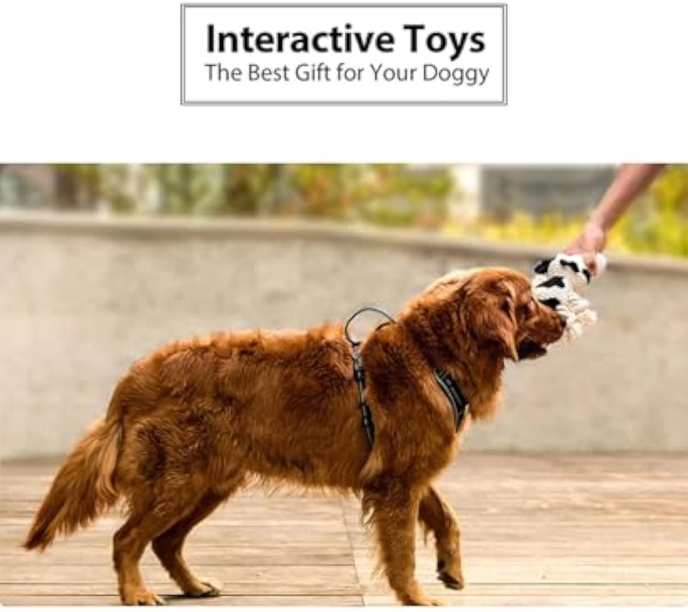Safe and Durable Materials: Made from ultra-soft plush and natural cotton, this stuffed dog toys features waterproof layers and cotton rope legs for increased durability and bite-resistance, ensuring it's safe and long-lasting for dogs of all sizes